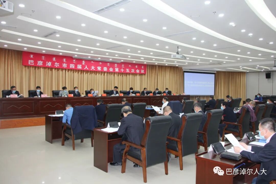 4月17日,市四届人大常委会第十五次会议在临河举行。市人大常委会主任闫鹏主持会议并讲话,市人大常委会副主任贾润莲、贾峻、徐茂龙、李建军、佟格日乐,秘书长赵文勇和26名委员出席会议。