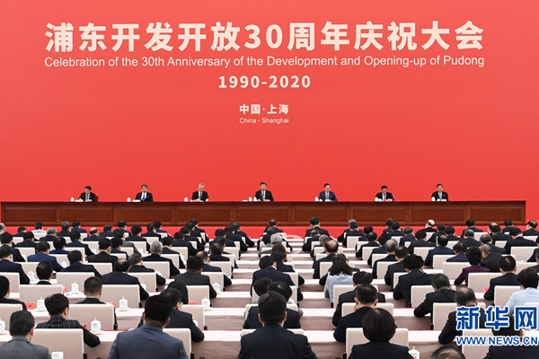 11月12日,浦东开发开放30周年庆祝大会在上海市举行。中共中央总书记、国家主席、中央军委主席习近平在会上发表重要讲话。新华社记者