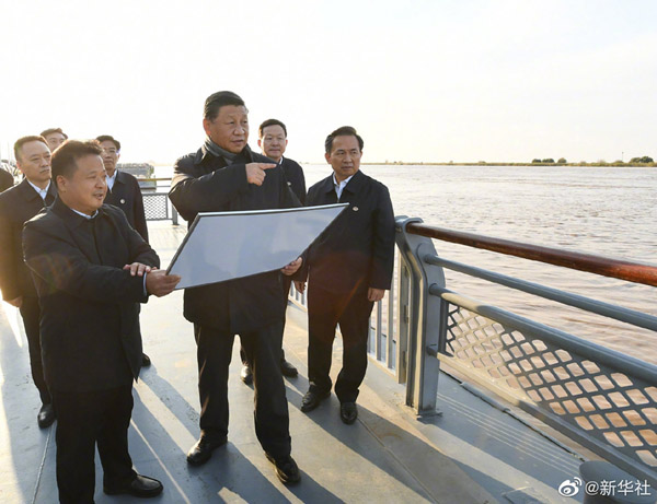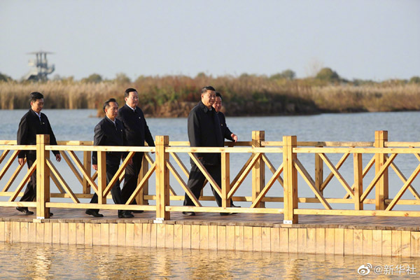 习近平总书记20日在山东省东营市考察黄河入海口。当天下午,他来到黄河入海口码头、黄河三角洲生态监测中心、黄河三角洲国家级自然保护区,实地察看黄河河道水情和黄河三角洲湿地生态环境,了解黄河流域生态保护和高质量发展等情况。(文字记者:张晓松、朱基钗;摄影记者:李学仁、谢环驰、王晔)