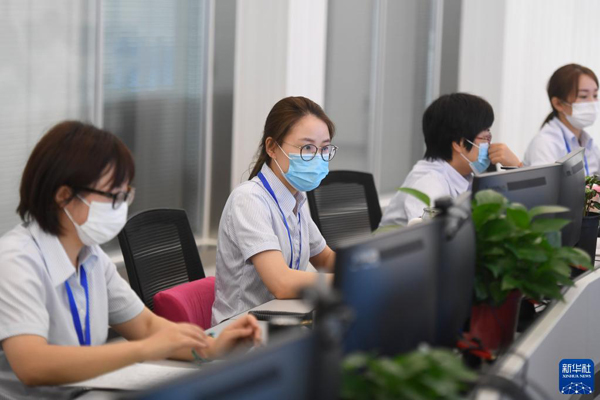 工作人员在浙江省诸暨市社会矛盾纠纷调处化解中心综合信息指挥室处理群众反映的问题(2020年7月16日摄)。新华社记者 黄宗治 摄