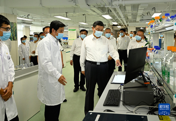 10日下午,习近平首先来到位于三亚市崖州湾科技城的崖州湾种子实验室考察调研。习近平听取了科技城规划建设和实验室总体情况介绍,察看了实验室搭建平台支持种业创新成果展示,对海南省探索农业科技创新模式、支撑保障国家粮食安全的做法表示肯定。习近平先后走进大型仪器公共服务中心、精准分子设计育种中心,同科研人员深入交流。习近平指出,中国人的饭碗要牢牢端在自己手中,就必须把种子牢牢攥在自己手里。要围绕保障粮食安全和重要农产品供给集中攻关,实现种业科技自立自强、种源自主可控,用中国种子保障中国粮食安全。要继承和发扬老一辈农业科研工作者胸怀祖国、服务人民的优秀品质,拿出十年磨一剑的劲头,勇攀农业科技高峰。