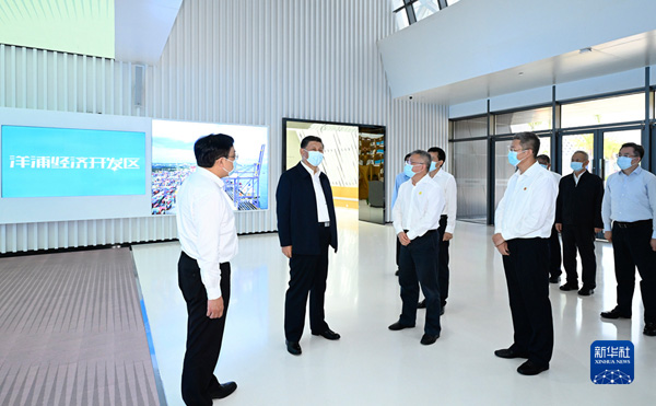 4月10日至13日,中共中央总书记、国家主席、中央军委主席习近平在海南考察。这是12日上午,习近平在洋浦经济开发区考察。新华社记者 李学仁 摄