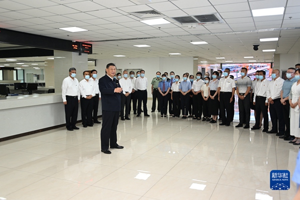 7月12日至15日,中共中央总书记、国家主席、中央军委主席习近平在新疆考察。这是12日下午,习近平在乌鲁木齐国际陆港区,同工作人员及现场办事人员亲切交流。新华社记者 谢环驰 摄