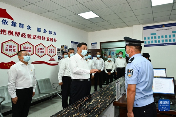 7月12日至15日,中共中央总书记、国家主席、中央军委主席习近平在新疆考察。这是14日,习近平在吐鲁番市高昌区亚尔镇新城片区新城西门村党群服务中心警务室考察。新华社记者 燕雁 摄