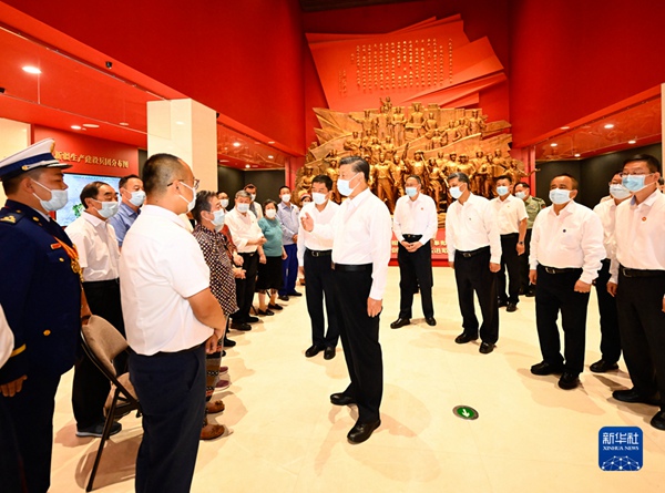 7月12日至15日,中共中央总书记、国家主席、中央军委主席习近平在新疆考察。这是12日下午,习近平在新疆大学参观校史馆。新华社记者 李学仁 摄
