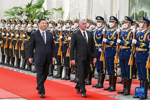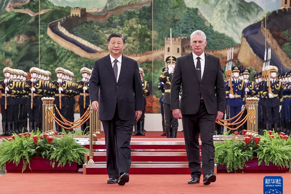 11月25日,中共中央总书记、国家主席习近平在北京人民大会堂同来华进行国事访问的古巴共产党中央委员会第一书记、古巴国家主席迪亚斯-卡内尔举行会谈。这是会谈前,习近平在人民大会堂北大厅为迪亚斯-卡内尔举行欢迎仪式。新华社记者 丁林 摄