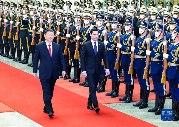 会谈前,习近平在人民大会堂北大厅为谢尔达尔·别尔德穆哈梅多夫举行欢迎仪式。