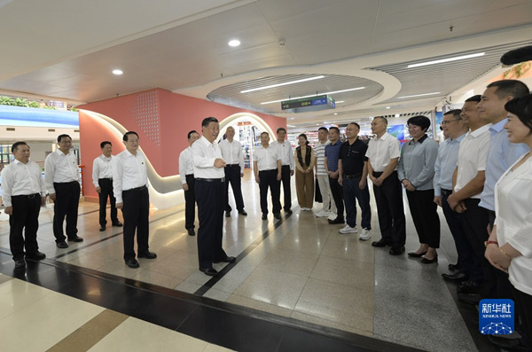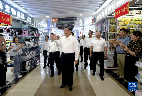 随后,习近平来到义乌国际商贸城考察。他通过电子屏幕实时了解商贸城运营及“义新欧”班列运行情况,并走进市场同商户、小企业主代表亲切交流,详细询问市场行情。他强调,义乌小商品闯出了大市场、做成了大产业,走到这一步很了不起,每个人都是参与者、建设者、贡献者。商贸城要再创新辉煌,为拓展国内国际市场、畅通国内国际双循环作出更大贡献。