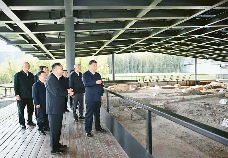 2023年10月10日至13日,中共中央总书记、国家主席、中央军委主席习近平在江西考察。这是11日上午,习近平在景德镇市陶阳里历史文化街区南麓遗址考察。 新华社记者 谢环驰/摄